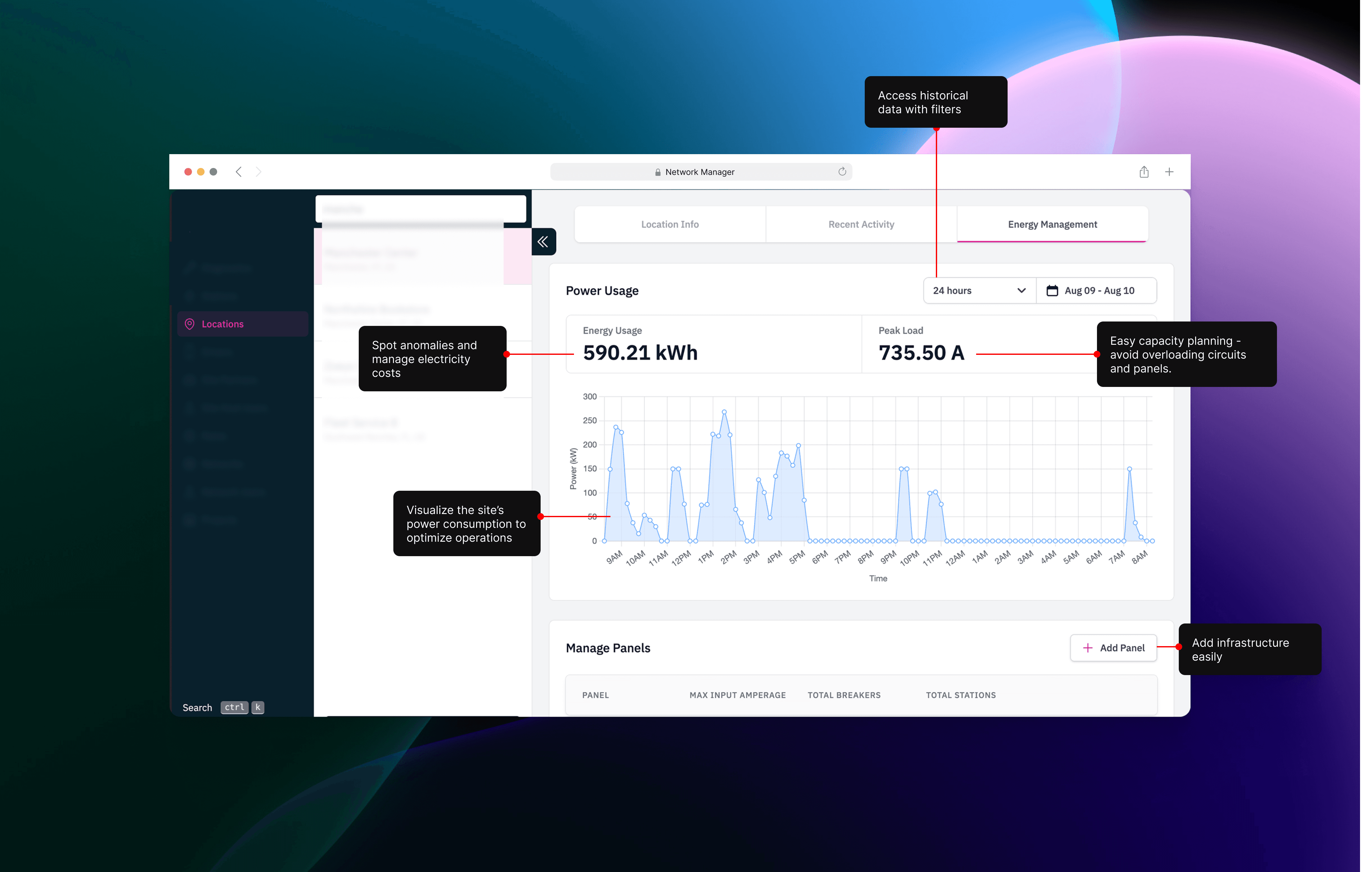 Show real-time usage across breakers and electrical phases for more granular visibility and control.